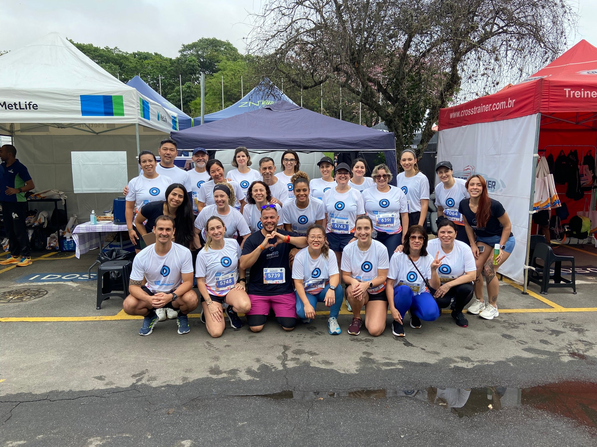 Cuidamos das inscrições e da retirada dos kits para cada participante. No dia do evento, levamos nossa tenda para o local da corrida, onde nossos alunos podem desfrutar de um café da manhã, alongamento, aquecimento e um recovery com fisioterapia pós-prova.